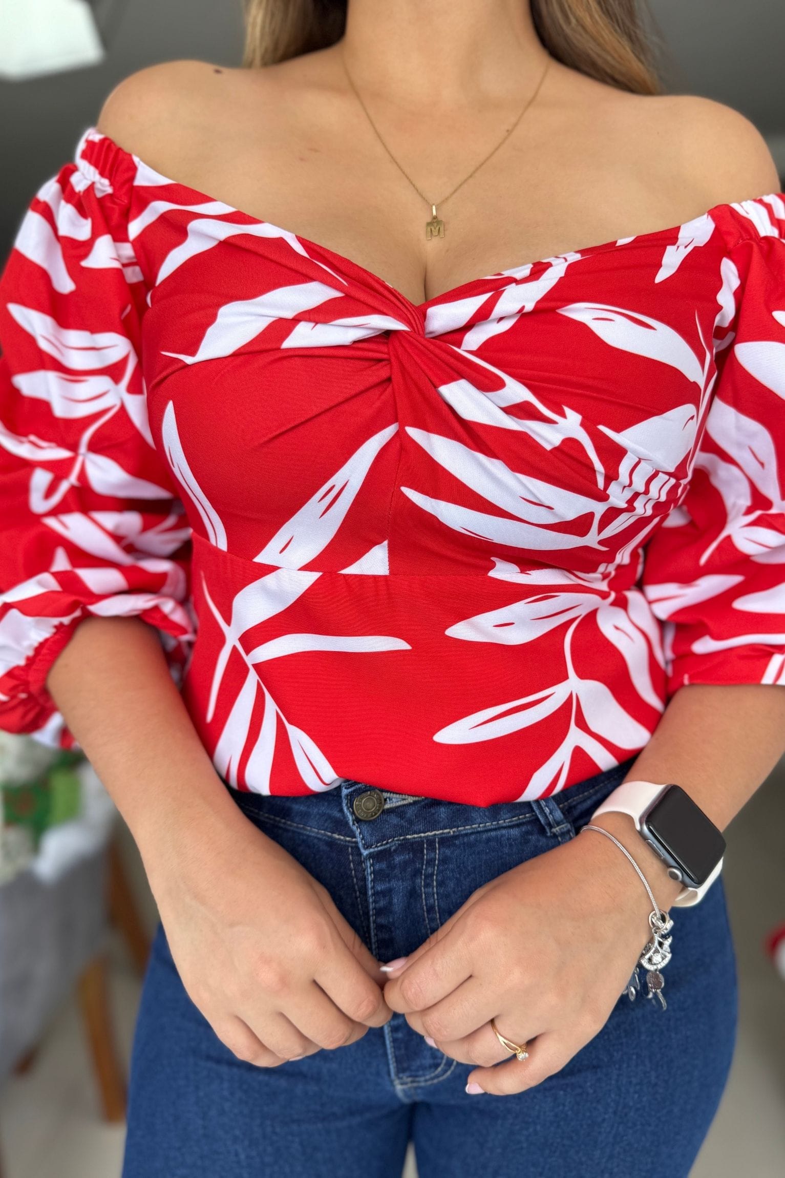 Diseño elegante con un corte off-shoulder y mangas abullonadas que añaden un toque sofisticado. Cuenta con un detalle de nudo en la parte frontal y una cremallera en la parte trasera, lo que resalta su estilo único. La tela, de seda estudio, ofrece una caída suave y ligera, ideal para un look versátil. La modelo utiliza talla S.