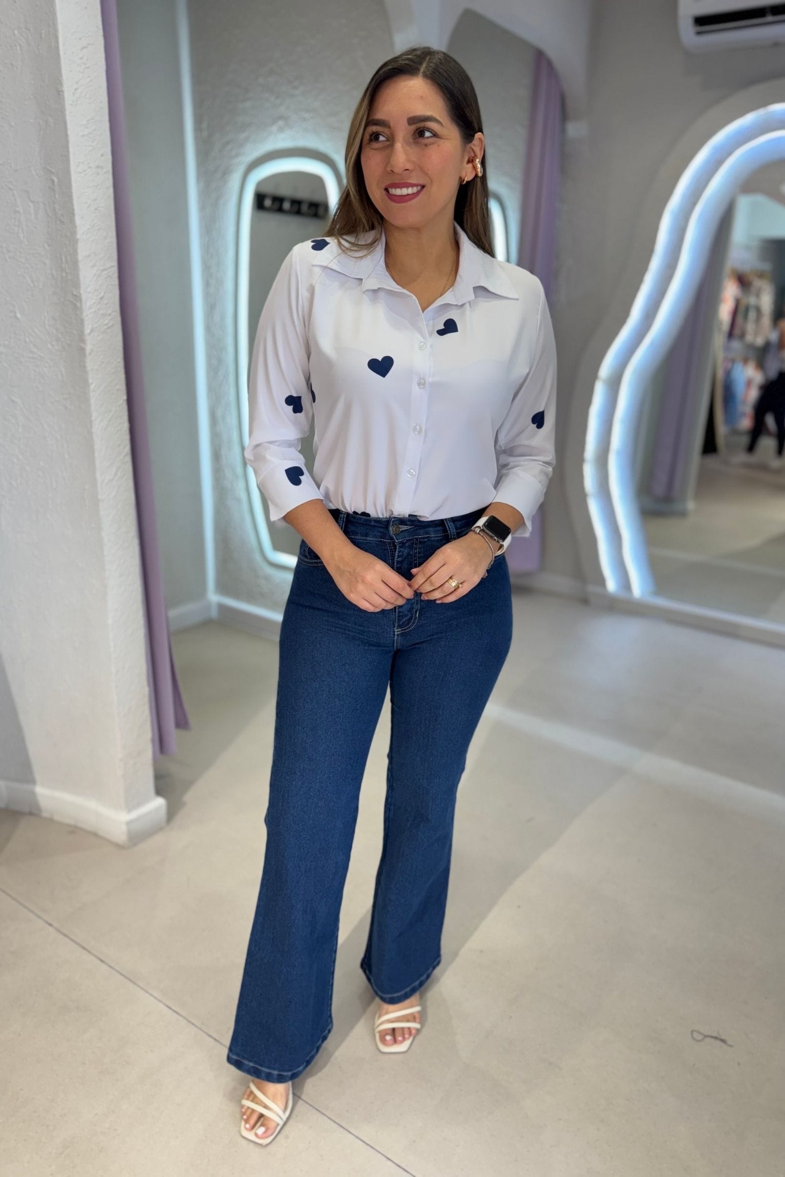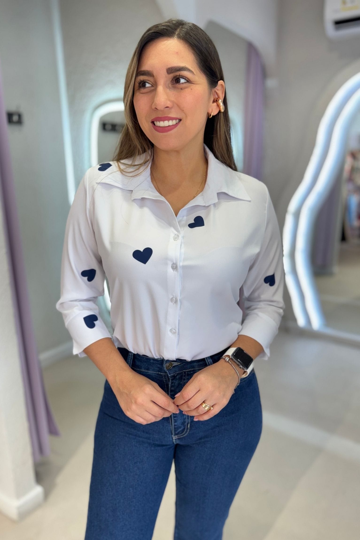 La blusa que lleva la modelo, quien es talla S, tiene un diseño clásico y elegante con mangas largas que terminan en puños ajustados, brindando un toque refinado. Su cuello tipo camisa y el corte recto le dan un estilo versátil, ideal para un look tanto formal como casual. Está elaborada en seda estudio, lo que le aporta una textura suave y una caída fluida, perfecta para un acabado sofisticado.